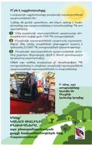 About 100-150 people participated in each of community meeting during which upcoming plans to turn Talin into a green city, some details referring to the draft law on the reduction of usage of plastic bags were presented. The participants agreed to have their contribution, raise awareness about the environmental damage of plastic bags, try to reduce the usage, but all expressed their concerns that as still no law is adopted that will define the final packaging price, a certain group of citizens will keep on going demanding plastic bags from the businesses.